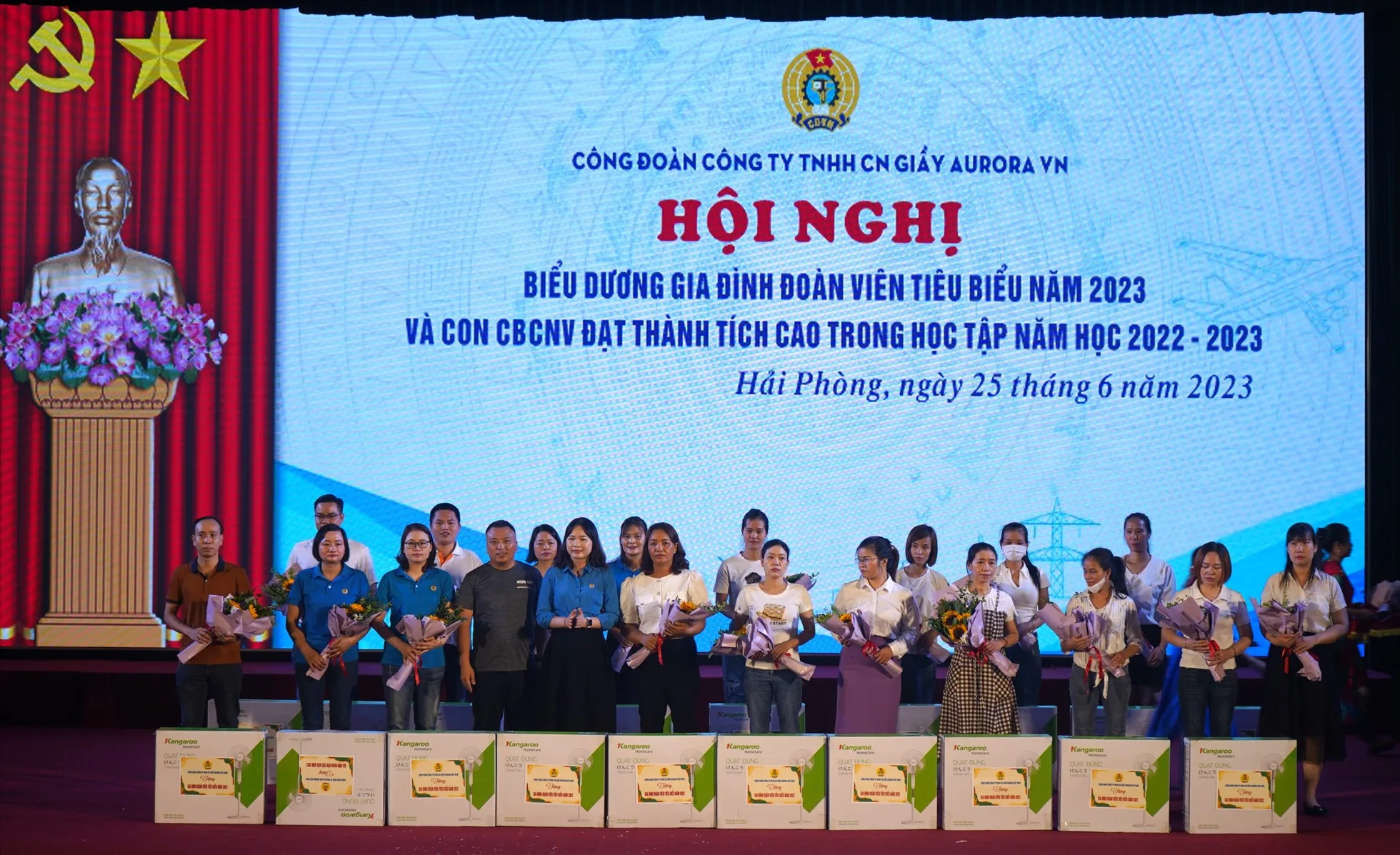 Sáng 25.6, Công đoàn Công ty TNHH Công nghiệp Giày Aurora Việt Nam (huyện Thuỷ Nguyên, Hải Phòng) tổ chức chương trình biểu dương gia đình công nhân lao động tiêu biểu, con công nhân lao động đạt thành tích cao trong học tập.