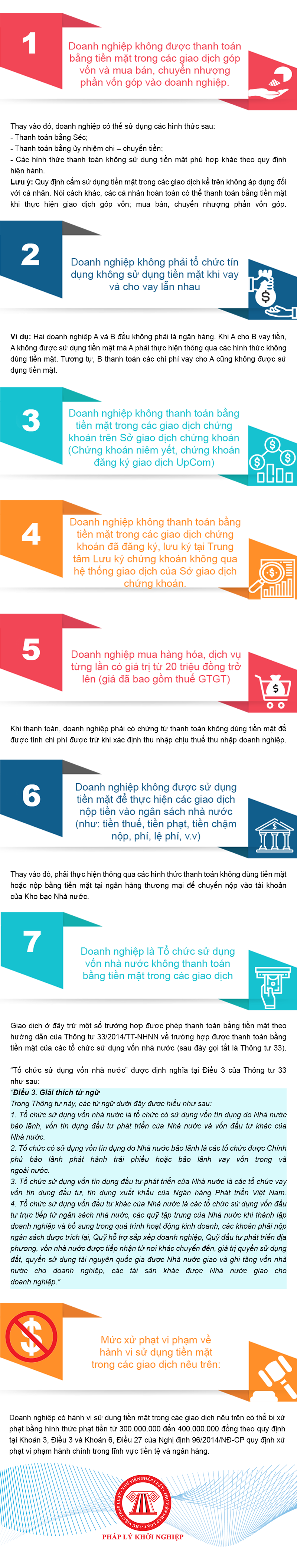 Doanh nghiệp không được sử dụng tiền mặt khi thực hiện các giao dịch này