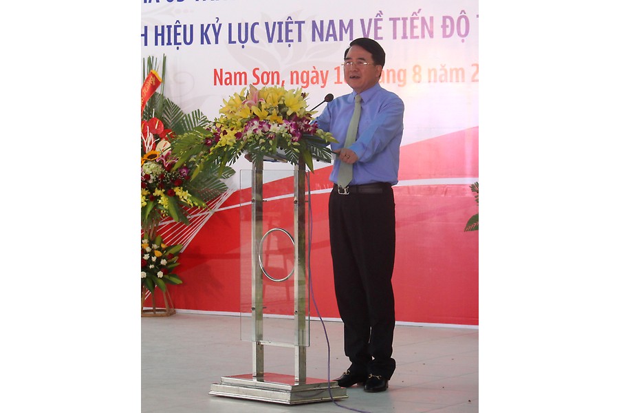 Phát biểu tại buổi lễ, thay mặt lãnh đạo thành phố, đồng chí Phó chủ tịch UBND thành phố Lê Khắc Nam ghi nhận và cám ơn doanh nghiệp Sơn Trường có nhiều đóng góp đối với thành phố, hỗ trợ kinh phí thành phố xây dựng nhiều công trình phúc lợi, trong đó có dãy nhà 3 tầng Trường tiểu học Nam Sơn. Đồng chí Phó chủ tịch UBND thành phố giao Sở Xây dựng, Sở Giáo dục- Đào tạo, huyện An Dương khẩn trương làm thủ tục kiểm định bảo đảm an toàn mới đưa công trình vào sử dụng. Đồng chí cũng đề nghị gắn biển công trình để ghi nhận sự đóng góp của doanh nghiệp đối với địa phương.