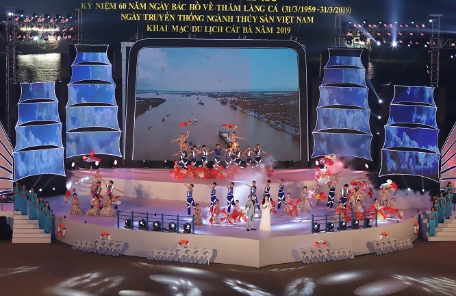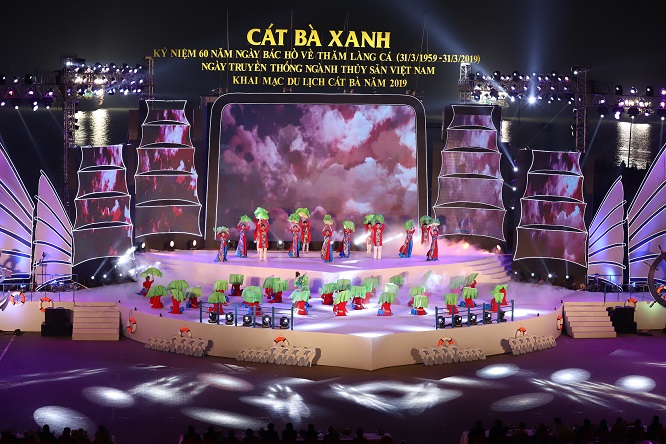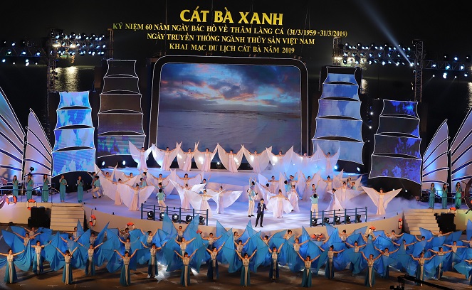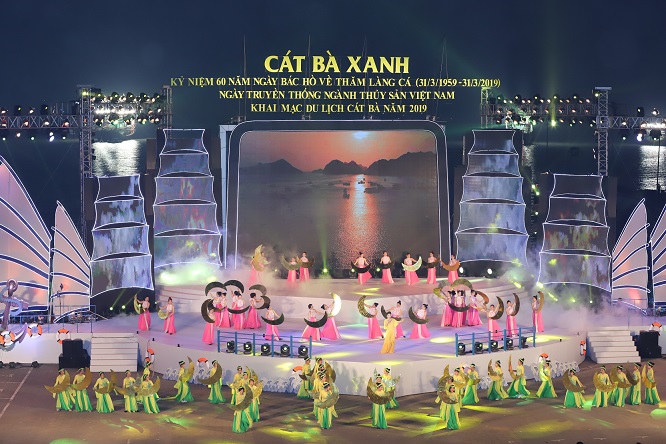 Tối 31-3, tại trung tâm du lịch Cát Bà diễn ra Chương trình nghệ thuật “Cát Bà Xanh”, điểm nhấn của chuỗi các hoạt động kỷ niệm 60 năm Ngày Bác Hồ về thăm Làng cá Cát Bà (31-3-1959 – 31-3-2019); kỷ niệm 60 năm Ngày truyền thống Ngành Thủy sản Việt Nam (1-4-1959 – 1-4-2019) và Khai mạc du lịch Cát Bà 2019.