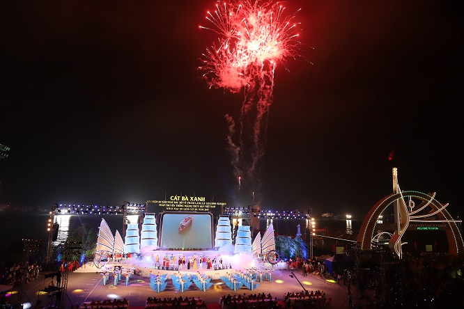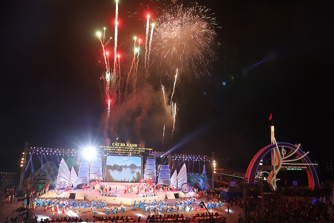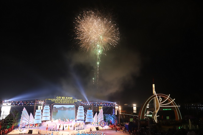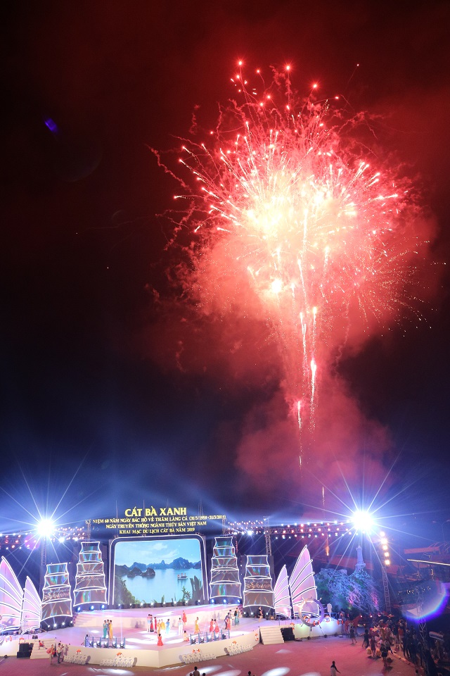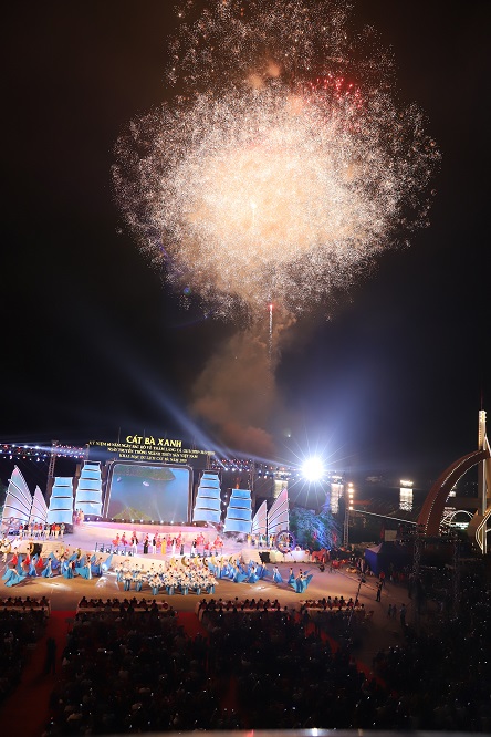 Điểm nhấn của chương trình khi tiết mục cuối cùng sắp kết thúc là màn pháo hoa rực sáng trên bầu trời đêm và biển Cát Bà.