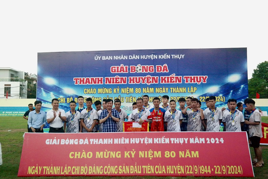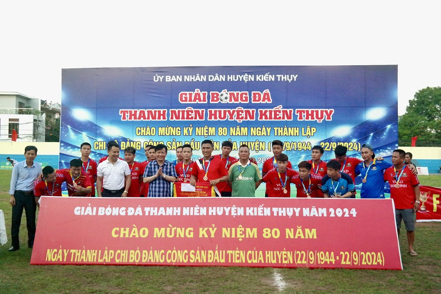 Chiều 26/5, tại sân vận động trung tâm huyện Kiến Thụy đã diễn ra trận Chung kết và Lễ bế mạc Giải bóng đá thanh niên huyện Kiến Thụy năm 2024.