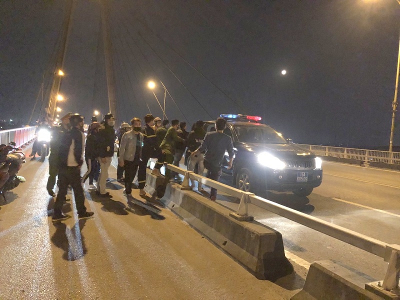 Ngay lập tức, Đội CSGT-TT Công an quận Hồng Bàng phối hợp với Cảnh sát 113 – CATP có mặt tại hiện trường, nhanh chóng triển khai đội hình bảo đảm ANTT, hướng dẫn phân luồng giao thông, không để người hiếu kỳ tụ tập đông trên cầu Bính, đồng thời vận động, thuyết phục và đưa nam thanh niên về trụ sở Công an phường Sở Dầu an toàn.