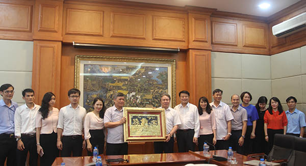 Phó Chủ tịch Thường trực UBND thành phố Nguyễn Xuân Bình trao quà và chụp ảnh lưu niệm với Đoàn công tác