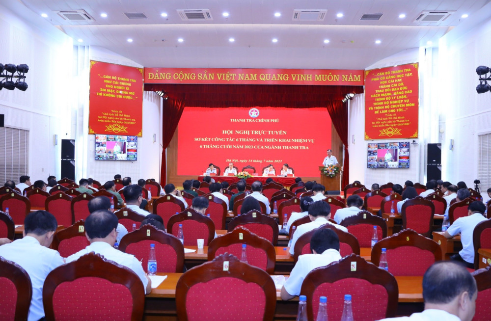 Sáng 14/7, Thanh tra Chính phủ tổ chức Hội nghị trực tuyến toàn quốc Sơ kết công tác 6 tháng đầu năm và triển khai nhiệm vụ 6 tháng cuối năm 2023 của ngành Thanh tra. Đồng chí Đoàn Hồng Phong, Ủy viên TW Đảng, Tổng Thanh tra Chính phủ chủ trì Hội nghị.