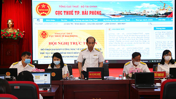 Sáng 23/9, đồng chí Vũ Huy Khuê, Phó Cục trưởng Cục Thuế thành phố chủ hội nghị trực tuyến hỗ trợ giải đáp vướng mắc về chính sách thuế, thủ tục hành chính đối với người nộp thuế trên địa bàn thành phố Hải Phòng năm 2021. Tham dự có đại diện lãnh đạo VCCI Hải Phòng; các tổ chức, cá nhân, doanh nghiệp, người nộp thuế trên địa bàn thành phố Hải Phòng.