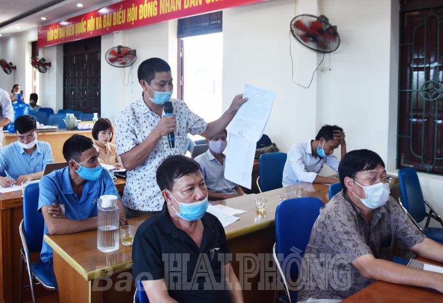 Tiếp thu ý kiến của các hộ dân, đại diện cán bộ Phòng Tài nguyên và Môi trường, Trung tâm Phát triển quỹ đất huyện Thủy Nguyên trả lời kiến nghị cụ thể của từng hộ. Theo đó, khẳng định quá trình xác định nguồn gốc đất đều căn cứ trên sổ mục kê, bản đồ giải thửa do địa phương quản lý và hồ sơ do người dân cung cấp. Đối với các hộ dân cho rằng đất của gia đình là đất ở, đề nghị được công nhận quyền sử dụng đất, được bồi thường về đất…đều không hoặc chưa cung cấp được cho các cơ quan chức năng của huyện các giấy tờ chứng minh mục đích sử dụng đất làm đất ở, thời điểm sử dụng đất hoặc việc ăn ở lâu dài, ổn định…Việc xét giao tái định cư cũng được căn cứ theo các quy định của pháp luật trên cơ sở nguồn gốc sử dụng đất, quyền sử dụng đất và quá trình các hộ sử dụng đất.