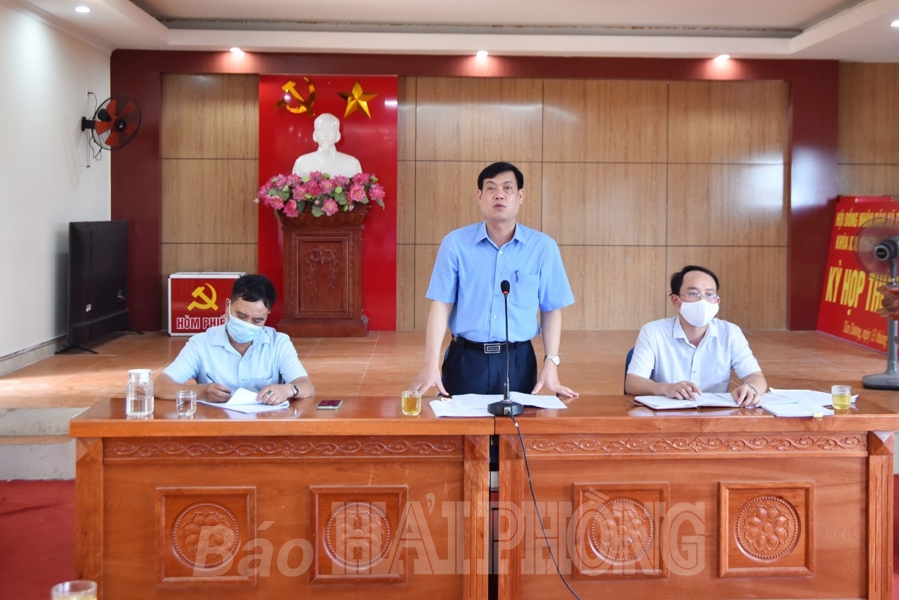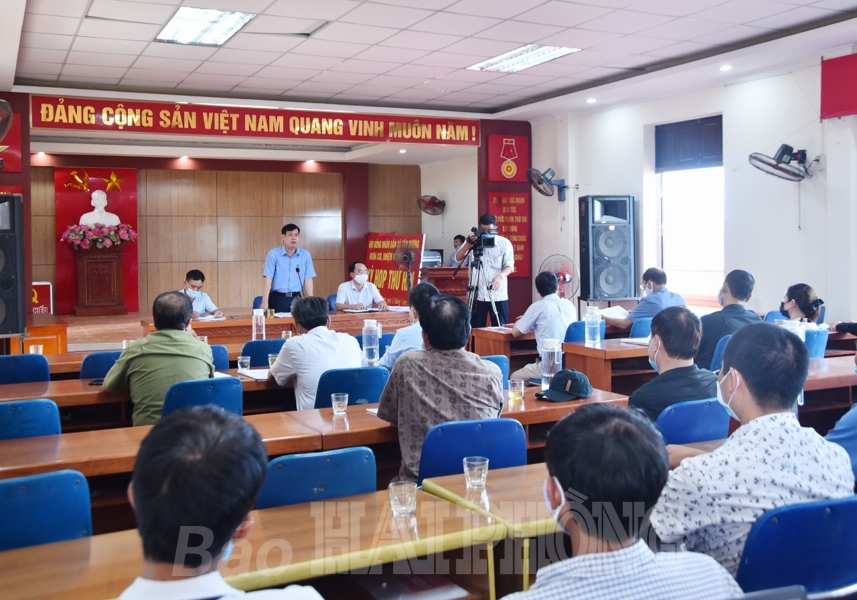Chiều 9/9, Ban cưỡng chế thu hồi đất theo Quyết định 5880 ngày 19/8/2021 của UBND huyện Thủy Nguyên tổ chức họp để vận động, đối thoại với 47 hộ dân thuộc diện cưỡng chế thu hồi đất để thực hiện dự án đầu tư xây dựng hạ tầng kỹ thuật khu đô thị mới Bắc sông Cấm tại xã Tân Dương.