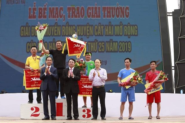 Chiều 31/3, trên vịnh Cát Bà, huyện Cát Hải, Giải đua thuyền rồng huyện Cát Hải mở rộng tranh Cúp Báo Hải Phòng lần thứ 25 năm 2019 đã diễn ra sôi động trước sự cổ vũ của hàng nghìn người dân huyện đảo và du khách trong, ngoài nước. Phó Chủ tịch UBND thành phố Lê Khắc Nam cùng lãnh đạo các sở, ngành, địa phương tới dự lễ bế mạc và trao giải.