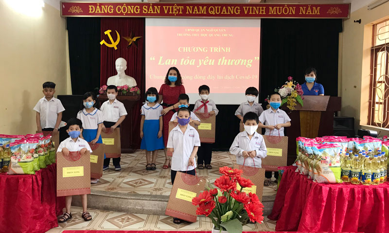 Em cũng biết ở Trường có chị Hà Linh, lớp 4A7 đã tặng 2 triệu đồng cho Đoàn Thanh niên phường Vạn Mỹ để làm máy xịt cồn sát khuẩn tự động tặng Trạm y tế phường Vạn Mỹ và Trường Tiểu học Quang Trung. Em cũng muốn học tập các anh chị ấy, muốn đóng góp tiền mừng tuổi của mình để mua quà tặng các anh chị và các bạn khó khăn trong Trường, chia sẻ với những người còn khó khăn hơn mình với số tiền là 6 triệu đồng. Em mong cô Hiệu trưởng sẽ giúp em thực hiện ước mơ này của em – Em Hiền viết trong thư.