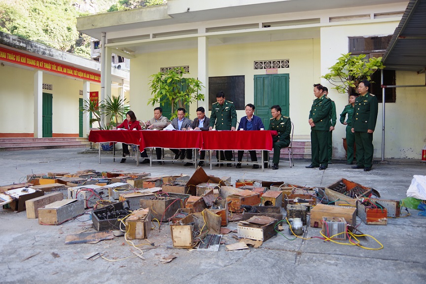 Thông qua tuần tra, kiểm soát Đồn Biên phòng Cát Bà đã tịch thu 101 công cụ kích điện đã qua sử dụng và tổ chức tiêu hủy.