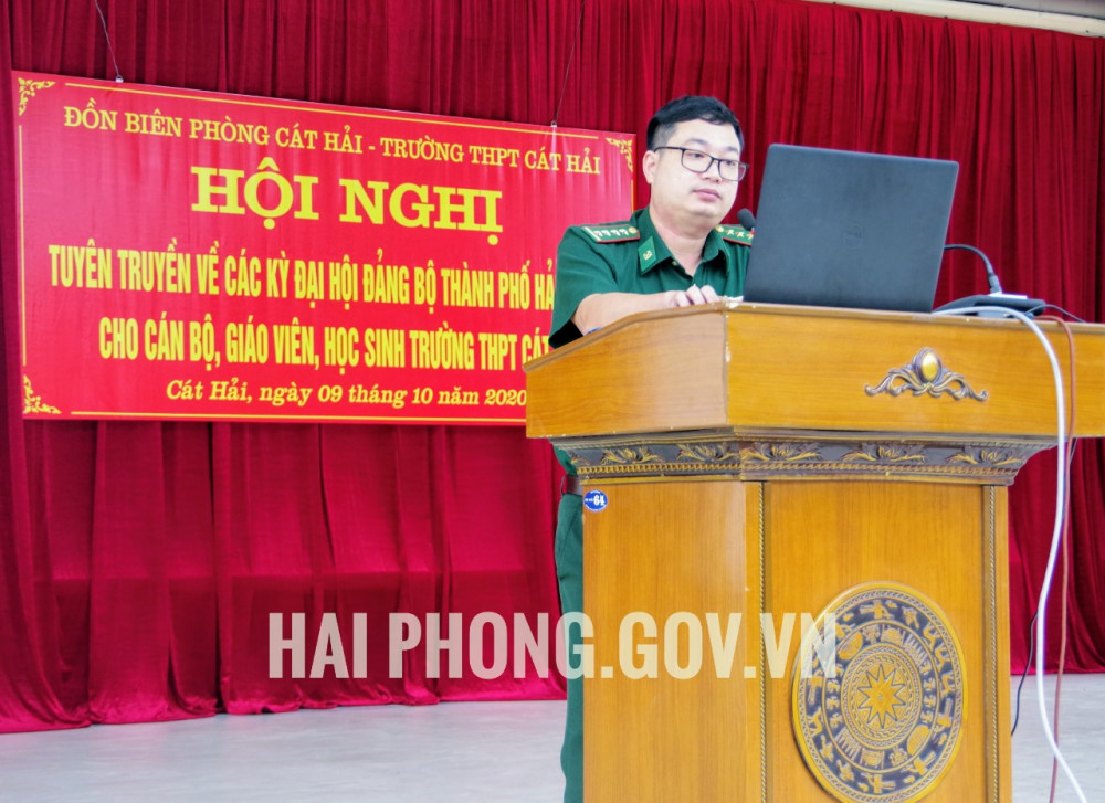 Đại úy Phạm Văn Hiếu – Chính trị viên Phó Đồn Biên phòng Cát Hải cho biết, thông qua chương trình tuyên truyền sẽ giúp cho toàn thể cán bộ, giáo viên và các em học sinh Trường THPT Cát Hải hiểu rõ hơn về vai trò, ý nghĩa của Đảng bộ thành phố Hải Phòng qua các kỳ Đại hội; góp phần tạo sự thống nhất về tư tưởng, chính trị và sự đồng thuận trong xã hội để hướng tới thành công Đại hội Đảng bộ thành phố Hải Phòng lần thứ XVI. Đồng thời khơi dậy ý thức tự hào về thành phố Cảng “Trung dũng – Quyết thắng”; tích cực, chủ động tham gia cùng với các lực lượng bảo vệ vững chắc chủ quyền biển, đảo của Tổ quốc.