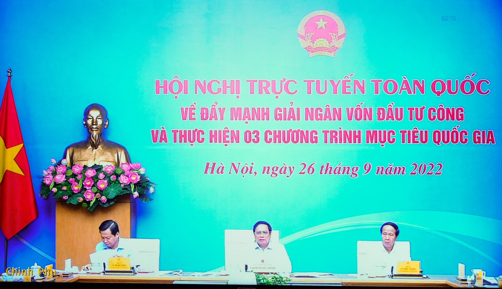 Sáng 26/9, Thủ tướng Chính phủ Phạm Minh Chính chủ trì Hội nghị trực tuyến toàn quốc về đẩy mạnh giải ngân vốn đầu tư công và thực hiện 03 Chương trình Mục tiêu quốc gia.