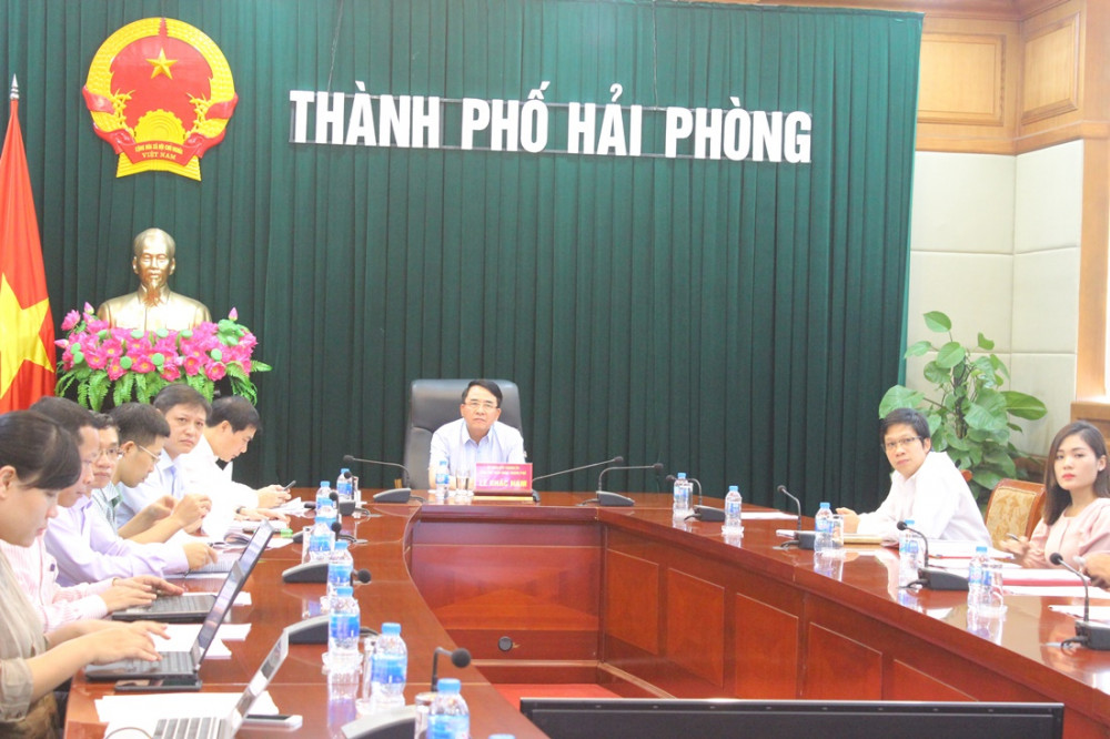 Đồng chí Lê Khắc Nam, Phó Chủ tịch UBND thành phố chủ trì tại điểm cầu Hải Phòng