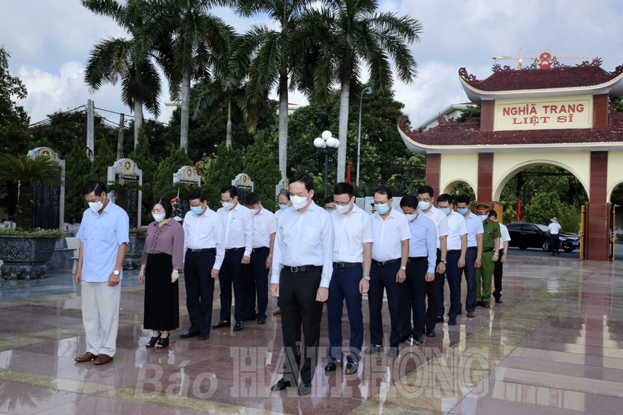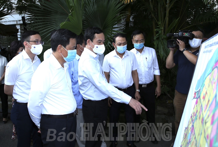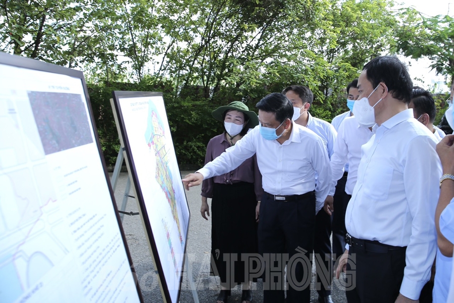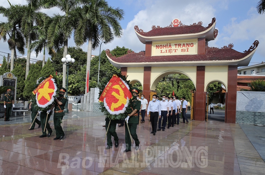 Trước đó, đồng chí Bí thư Thành ủy Trần Lưu Quang và các thành viên đoàn công tác đến dâng hương, tưởng niệm các anh hùng liệt sĩ tại Nghĩa trang liệt sĩ quận Ngô Quyền; thị sát thực địa tuyến đường T100 và T40 thuộc dự án Khu đô thị ngã 5-sân bay Cát Bi.