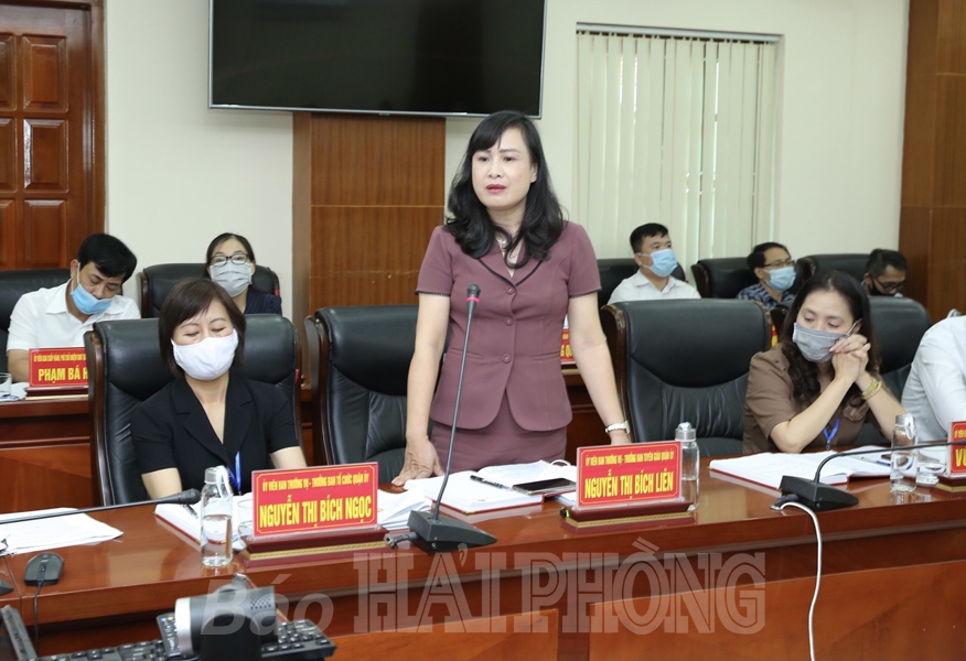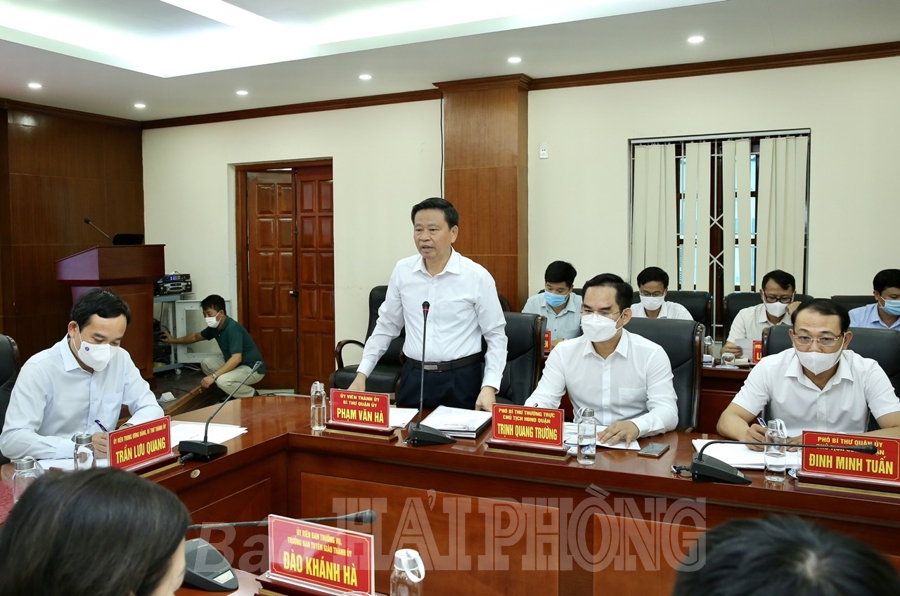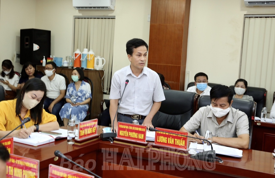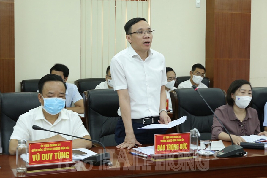 Tại hội nghị, lãnh đạo quận Ngô Quyền báo cáo làm rõ thêm một số nội dung và nêu một số vấn đề còn hạn chế tại địa phương, mong thành phố quan tâm khắc phục như: Dự án Khu đô thị ngã 5-sân bay Cát Bi chậm thi công nhiều năm, ảnh hưởng trực tiếp đến đời sống các hộ dân trong khu vực dự án. Nhân dân phường Đông Khê nói riêng và quận Ngô Quyền nói chung mong muốn thành phố chỉ đạo quyết liệt đẩy nhanh tiến độ dự án. Đề xuất thành phố xem xét chuyển đổi khu đất ở số 26 Lương Khánh Thiện, phường Cầu Đất phục vụ xây dựng cơ sở 2 Trường tiểu học Nguyễn Khuyến; tăng nguồn vốn đầu tư công cho quận để đầu tư xây dựng cơ sở trường học, trong đó có cơ sở 2 Trường mầm non Sao Sáng 6. Thành phố sớm công bố giá đất tái định cư khi thu hồi đất thực hiện Dự án đầu tư xây dựng tuyến đường Đông Khê 2 để thuận lợi công tác tuyên truyền, vận động người dân bàn giao mặt bằng phục vụ triển khai dự án đúng kế hoạch tiến độ. Thành phố có cơ chế để các quận cùng tham gia cải tạo vỉa hè các tuyến phố để công tác chỉnh trang vỉa hè các tuyến phố được triển khai nhanh, đồng bộ. Cùng với đó, thành phố quan tâm đẩy nhanh việc triển khai cải tạo chung cư cũ, nguy hiểm tại phường Vạn Mỹ, Cầu Tre và 34 lô nhà còn lại tại phường Đồng Quốc Bình nhằm bảo đảm an toàn, chất lượng đời sống người dân, đồng thời góp phần chỉnh trang đô thị. Sau sáp nhập tổ dân phố, nhiều chi bộ có số lượng đảng viên đông, trong khi nhà văn hóa tại cơ sở không bảo đảm đủ chỗ sinh hoạt, phải chia nhóm sinh hoạt, thêm khó khăn, vất vả với đội ngũ cán bộ cơ sở. Đề nghị thành phố xem xét, đánh giá tính hiệu quả của Đề án sáp nhập thôn, tổ dân phố; nếu tiếp tục triển khai, đề nghị thành phố quan tâm nâng mức phụ cấp với cán bộ ở cơ sở…