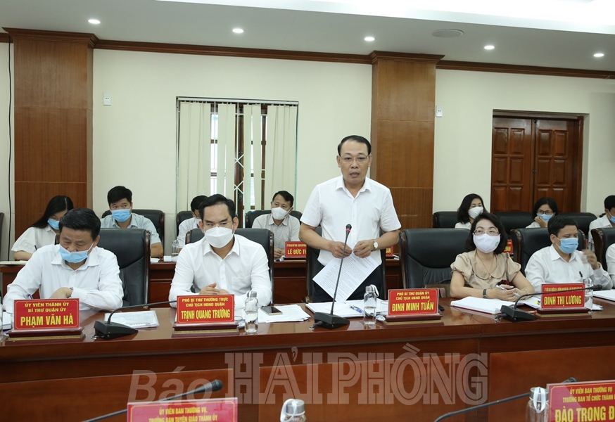 Tại cuộc làm việc, các đồng chí Ủy viên Ban Thường vụ Thành ủy, lãnh đạo các ngành phát biểu, phân tích làm rõ một số thành tựu, kết quả của quận Ngô Quyền và gợi ý các định hướng phát triển quận trong thời gian tới. Các ý kiến thống nhất đánh giá: Quận Ngô Quyền là địa phương có nhiều lợi thế phát triển. Những năm qua, quận phát huy tiềm năng, lợi thế, từng bước xây dựng quận trở thành trung tâm thương mại-dịch vụ, đô thị hiện đại của thành phố. Quận là một trong 3 địa phương có số thu ngân sách cao, bền vững của thành phố, đạt mức trên 1.000 tỷ đồng hằng năm. Tuy nhiên, số thất thu ngân sách còn lớn, số thu chưa tương xứng với tiềm năng, lợi thế. Đô thị quận phát triển nhanh, song hạ tầng cơ sở tại nhiều khu vực xuống cấp; một số dự án thi công kéo dài nhiều năm ảnh hưởng trực tiếp đến đời sống của hàng nghìn hộ dân.