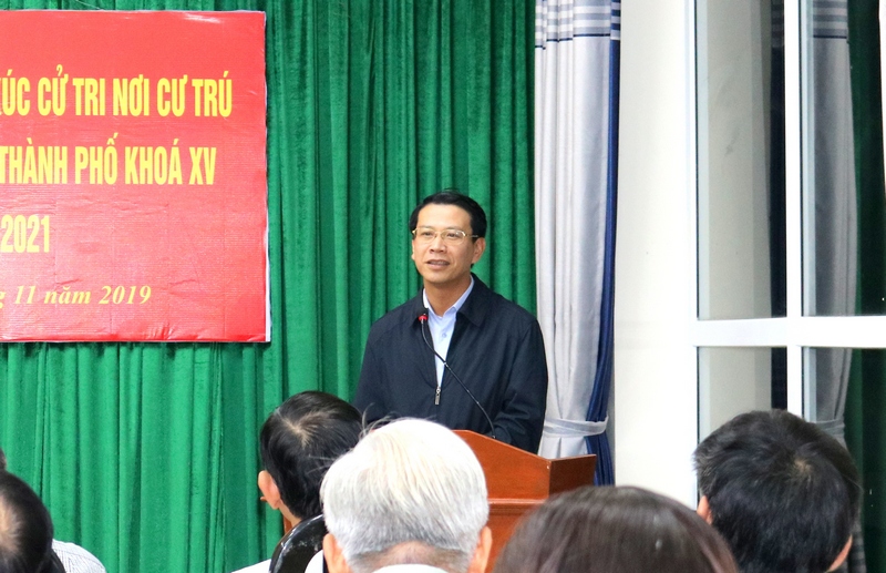 Tối 7-11, Đồng chí Bùi Đức Quang, Ủy viên Thành ủy, Phó chủ tịch HĐND thành phố tiếp xúc cử tri nơi cư trú tại trụ sở UBND phường Vĩnh Niệm, quận Lê Chân.