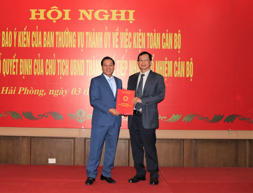 Sáng 3-12, Thành ủy, UBND thành phố tổ chức Hội nghị thông báo ý kiến của Ban Thường vụ Thành ủy về việc kiện toàn cán bộ và công bố Quyết định của Chủ tịch UBND thành phố về việc tiếp nhận, bổ nhiệm Phó Trưởng ban Ban Quản lý khu kinh tế Hải Phòng.