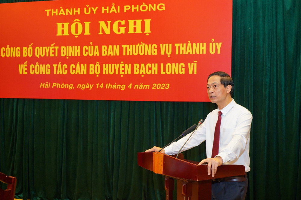 Phát biểu tại Hội nghị, đồng chí Đỗ Mạnh Hiến, Phó Bí Thư Thường trực Thành ủy chúc mừng hai đồng chí Trần Quang Tường và Bùi Trung Tiến được nhận nhiệm vụ công tác mới. Đồng thời ghi nhận quá trình đóng góp của đồng chí Trần Quang Tường đối với sự phát triển của huyện Bạch Long Vĩ trong thời gian qua.