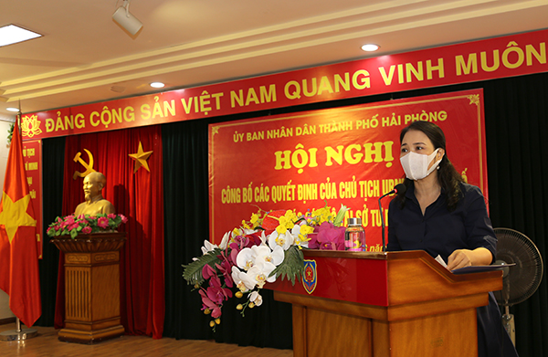 Tại hội nghị, đồng chí Nguyễn Thị Thu, Giám đốc Sở Nội vụ công bố các Quyết định của Chủ tịch UBND thành phố: