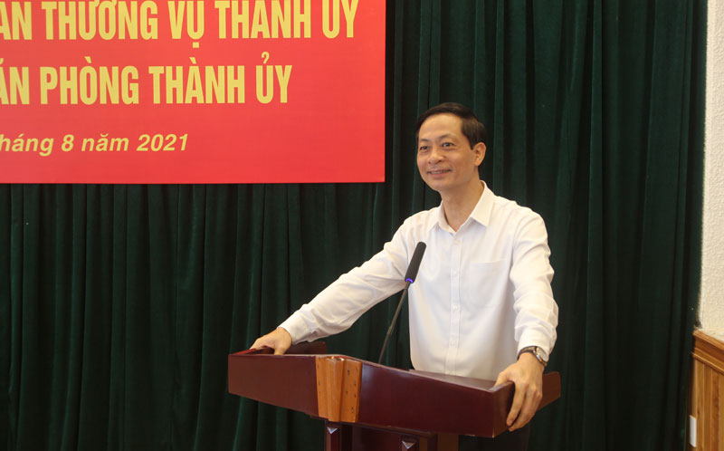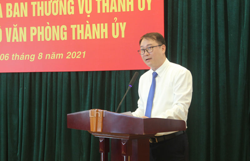 Chiều 6/8, Thường trực Thành ủy triệu tập Hội nghị công bố quyết định của Ban Thường vụ Thành ủy về công tác cán bộ Văn phòng Thành ủy. Đồng chí Đỗ Mạnh Hiến, Phó Bí thư Thường trực Thành ủy chủ trì Hội nghị.
