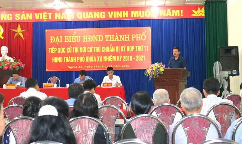 Chuẩn bị kỳ họp thứ 11 HĐND thành phố khóa XV, tối 11-11, tại trụ sở phường Nghĩa Xá, đại biểu HĐND thành phố gồm các đồng chí Phạm Văn Hà – Ủy viên Ban Thường vụ, Trưởng ban Ban Tổ chức Thành ủy; Phạm Văn Phương – Trưởng Ban Kinh tế – Ngân sách HĐND TP; Nguyễn Đức Thọ – Giám đốc Sở GTVT thành phố tiếp xúc cử nơi cư trú để lấy ý kiến tham gia vào nội dung Kỳ họp.