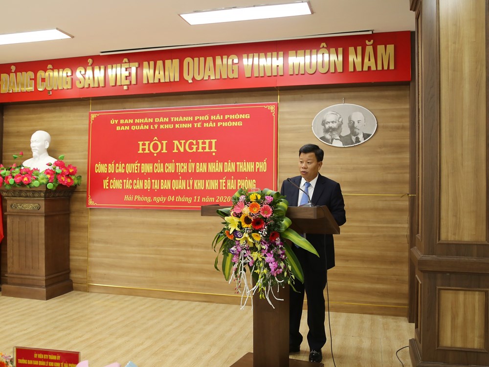 Sáng 4/11, UBND thành phố tổ chức Hội nghị công bố các Quyết định của Chủ tịch UBND thành phố về công tác cán bộ tại Ban Quản lý Khu kinh tế Hải Phòng.