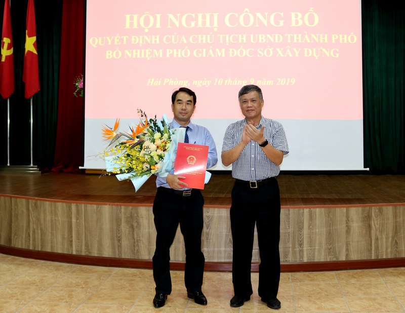 Chiều 10-9, tại Sở Xây dựng, UBND thành phố tổ chức Lễ công bố quyết định tiếp nhận, điều động và bổ nhiệm đồng chí Nguyễn Minh Tuấn, Chủ tịch kiêm Tổng Giám đốc Công ty TNHH Một thành viên Thoát nước Hải Phòng giữ chức vụ Phó Giám đốc Sở Xây dựng.