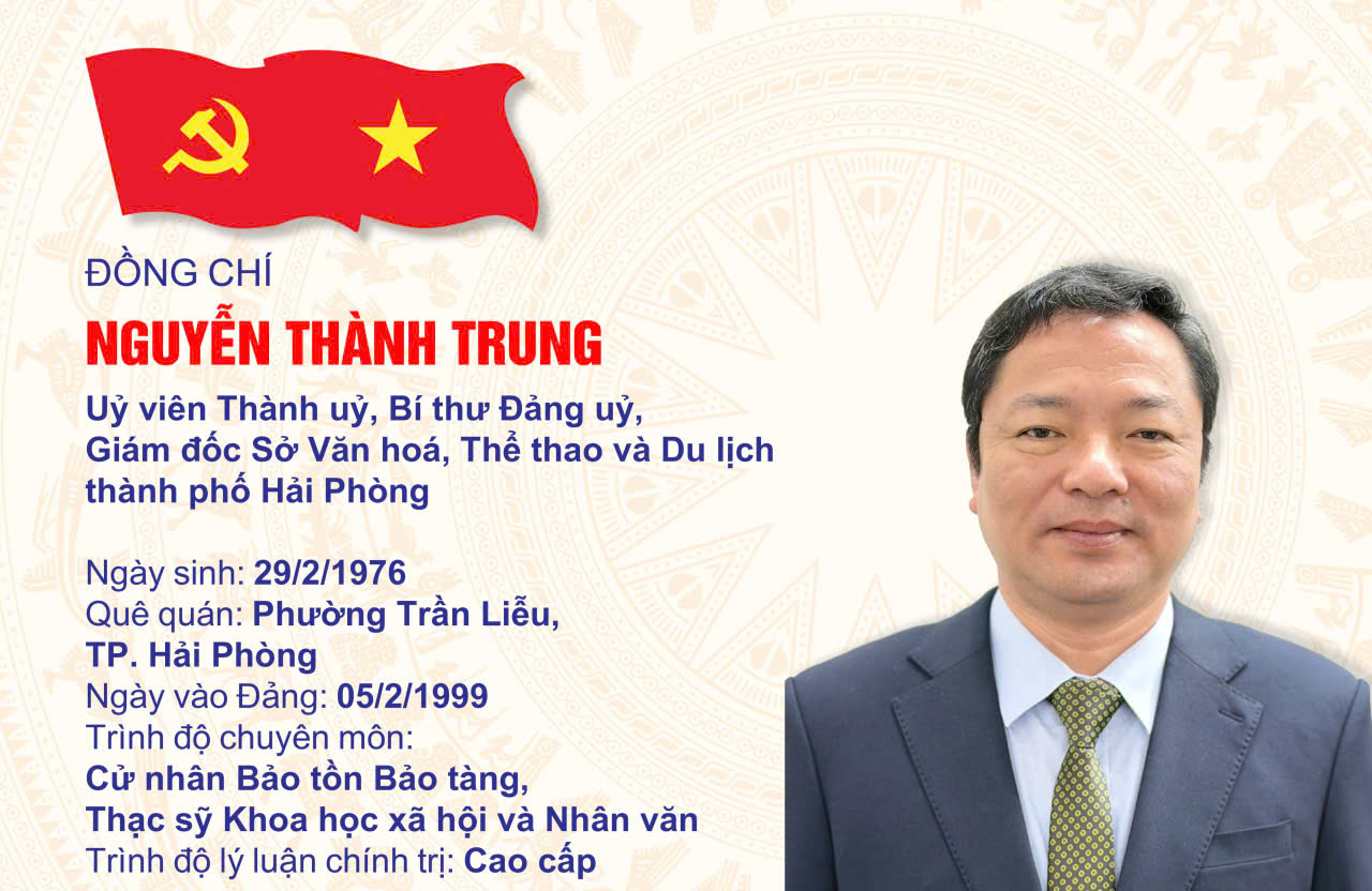 Đồng chí Nguyễn Thành Trung sinh năm 1976; quê quán phường Trần Liễu, thành phố Hải Phòng; trình độ chuyên môn: Cử nhân Bảo tồn Bảo tàng, Thạc sỹ Khoa học xã hội và Nhân văn. Từ tháng 10/2008 đến tháng 8/2013, đồng chí giữ chức Trưởng Ban biên tập – Tổng Biên tập Tạp chí Văn hóa, Thể thao và Du lịch Hải Dương. Từ tháng 9/2013 -9/2016, đồng chí là Ủy viên Ban thường vụ Đảng ủy, Trưởng phòng Quản lý Di sản văn hóa, Sở Văn hóa, Thể thao và Du lịch tỉnh Hải Dương. Từ tháng 10/2016 – 6/2021, đồng chí giữ chức Phó bí thư Đảng ủy, Phó Giám đốc Sở Văn hóa, Thể thao và Du lịch tỉnh Hải Dương. Từ tháng 7/2021 đến tháng 6/2025, đồng chí giữ chức Bí thư Đảng ủy, Giám đốc Sở Văn hóa, Thể thao và Du lịch tỉnh Hải Dương. Từ tháng 5/2023 đến tháng 6/2025, đồng chí là Ủy viên Ban chấp hành Đảng bộ tỉnh Hải Dương nhiệm kỳ 2020-2025. Từ tháng 7/2025 đến tháng 11/2025, đồng chí là Ủy viên Thành ủy, Trưởng ban – Ban Văn hóa, Xã hội, Hội đồng nhân dân thành phố Hải Phòng. Từ tháng 12/2025 đến nay, đồng chí giữ chức Giám đốc Sở Văn hóa, Thể thao và Du lịch thành phố Hải Phòng.