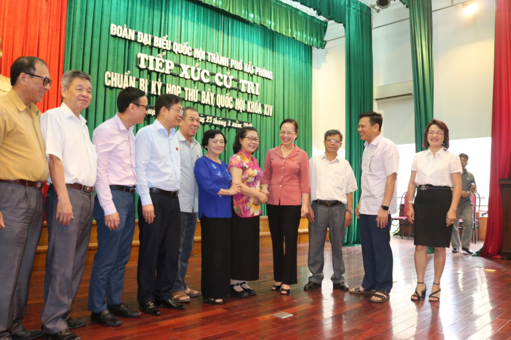 Sáng 25-4, tại quận Ngô Quyền, các đại biểu Quốc hội: Nguyễn Thị Nghĩa, Phó Bí thư Thường trực Thành ủy, Trưởng Đoàn ĐBQH Hải Phòng và Mai Hồng Hải, Tổng Giám đốc Công ty TNHH MTV Xi măng VICEM Hải Phòng, tiếp xúc cử tri chuẩn bị kỳ họp thứ 7 Quốc hội Khóa 14.