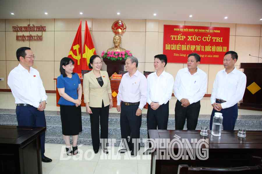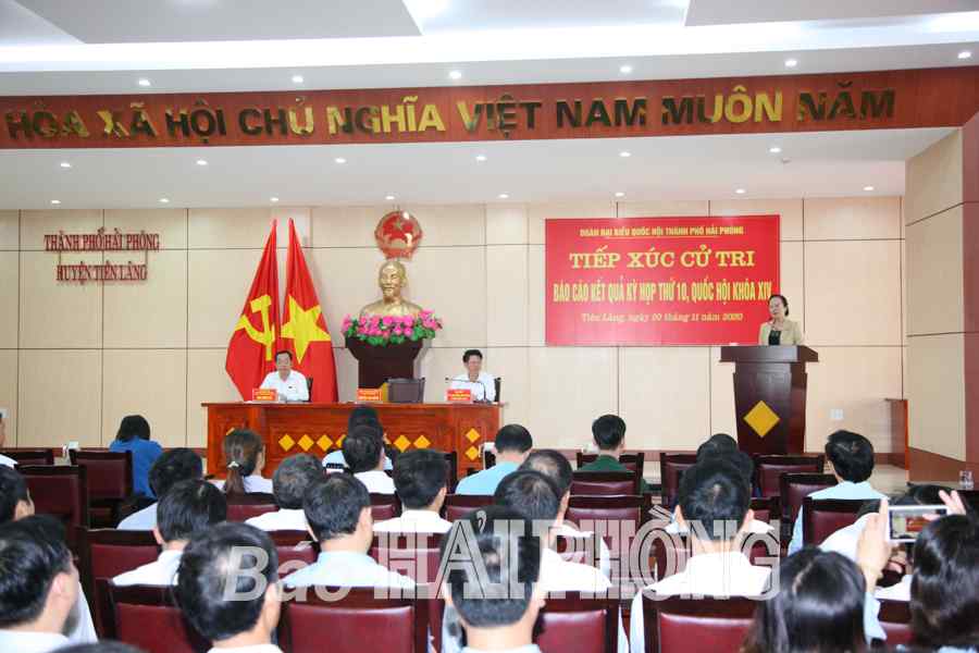 Sáng 20-11, các đại biểu Quốc hội: Nguyễn Thị Nghĩa, Trưởng Đoàn Đại biểu Quốc hội thành phố Hải Phòng; Mai Hồng Hải, Tổng Giám đốc Công ty TNHH MTV Xi măng Vicem Hải Phòng tiếp xúc cử tri huyện Tiên Lãng thông báo kết quả kỳ họp thứ 10, Quốc hội khóa 14.