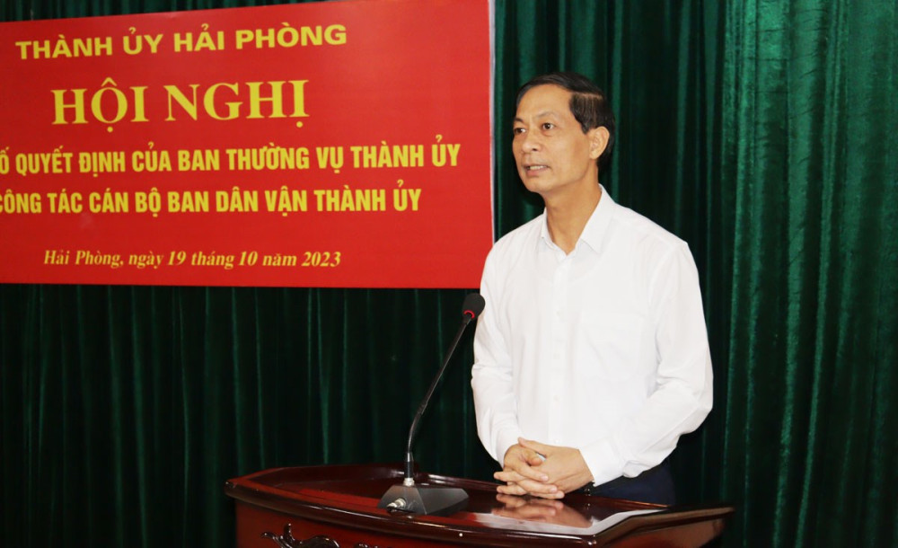 Chiều 19/10, Thường trực Thành ủy triệu tập Hội nghị công bố Quyết định của Ban Thường vụ Thành ủy về công tác cán bộ Ban Dân vận Thành ủy. Đồng chí Đỗ Mạnh Hiến, Phó Bí thư Thường trực Thành ủy chủ trì Hội nghị.