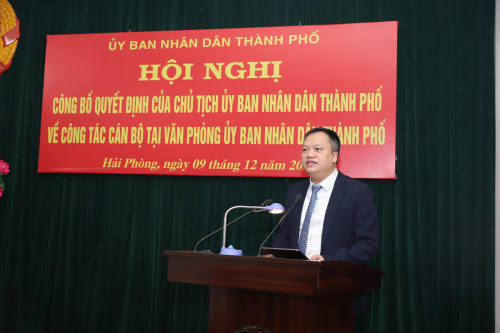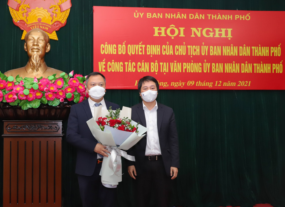 Sáng 9/12, UBND thành phố tổ chức hội nghị công bố Quyết định của Chủ tịch UBND thành phố về công tác cán bộ tại Văn phòng UBND thành phố.