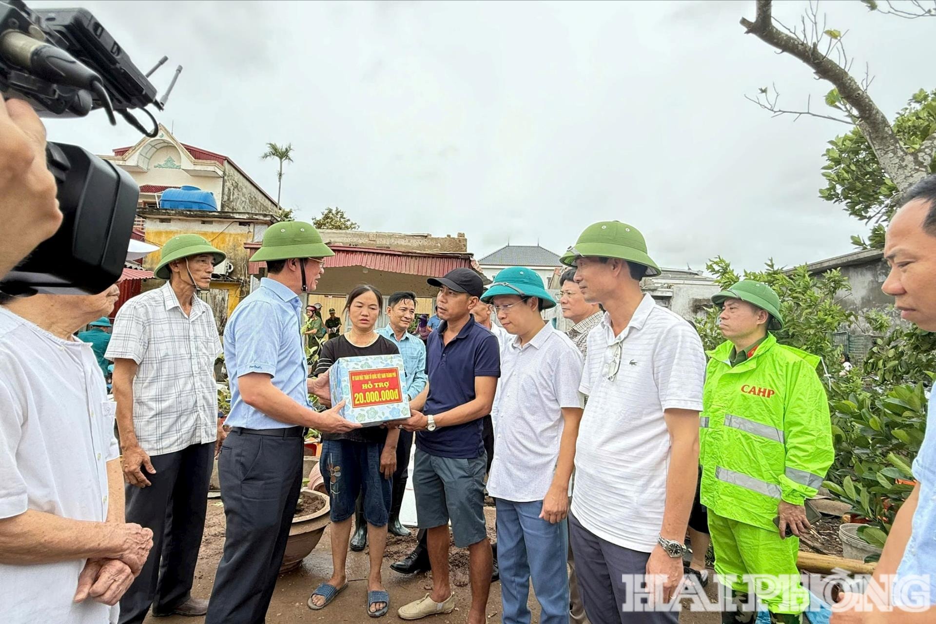 Đồng chí Phó bí thư Thành ủy, Chủ tịch Ủy ban MTTQ Việt Nam thành phố Hải Phòng Phạm Văn Lập đề nghị chính quyền xã Tân Minh tiếp tục huy động lực lượng hỗ trợ nhân dân triển khai công tác khắc phục hậu quả do dông lốc gây ra.