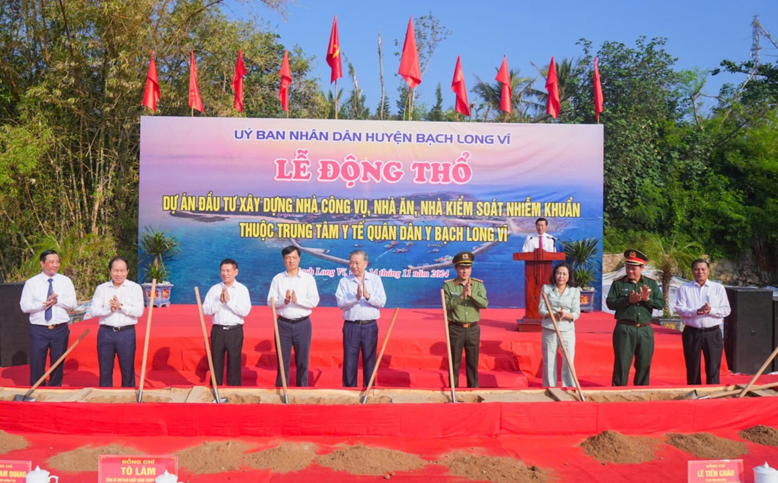 Trước đó, đồng chí Tổng Bí thư Tô Lâm và Đoàn công tác cùng lãnh đạo thành phố đã tới dâng hương tại đài tưởng niệm các Anh hùng liệt sĩ huyện Bạch Long Vĩ, thăm, tặng quà cán bộ, chiến sỹ Trạm Rada 27, Sư đoàn 363, quân chủng Phòng không, Không quân; dự Lễ động thổ Dự án xây dựng nhà công vụ, nhà ăn, nhà kiểm soát nhiễm khuẩn thuộc Trung tâm y tế Quân-Dân-Y huyện Bạch Long Vĩ. Dự án quy mô gồm hai khu nhà 2 tầng, 14 phòng chức năng, tổng diện tích sàn khoảng 780m2, đầu tư trang thiết bị đồng bộ và hiện đại. Công trình hoàn thành đưa vào sử dụng sẽ góp phần nâng cao năng lực, chất lượng khám, điều trị bệnh của Trung tâm y tế quân dân y Bạch Long Vĩ./.