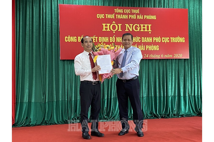 Chiều 24-6, Tổng cục Thuế, Cục Thuế Hải Phòng tổ chức hội nghị công bố quyết định về công tác cán bộ Cục Thuế Hải Phòng. Tới dự có các đồng chí: Nguyễn Văn Thành, Phó chủ tịch UBND thành phố; Phí Văn Tuấn, Phó tổng cục trưởng Tổng cục Thuế; đại diện lãnh đạo các Ban xây dựng Đảng và cán bộ chủ chốt Cục Thuế.