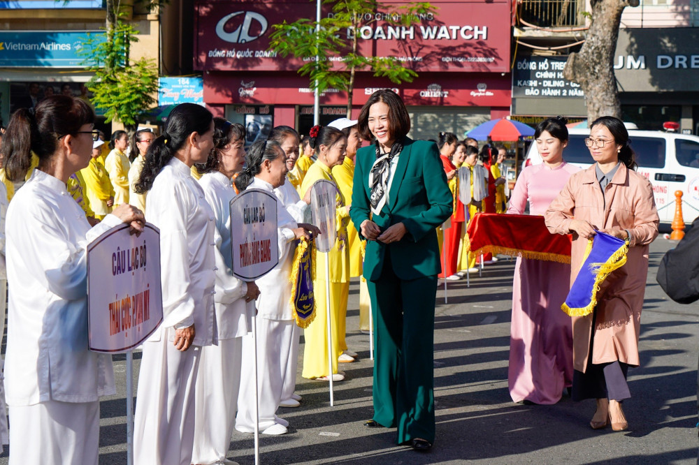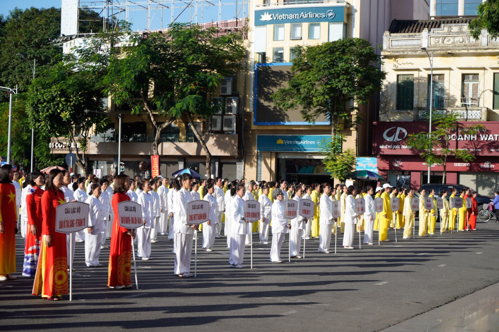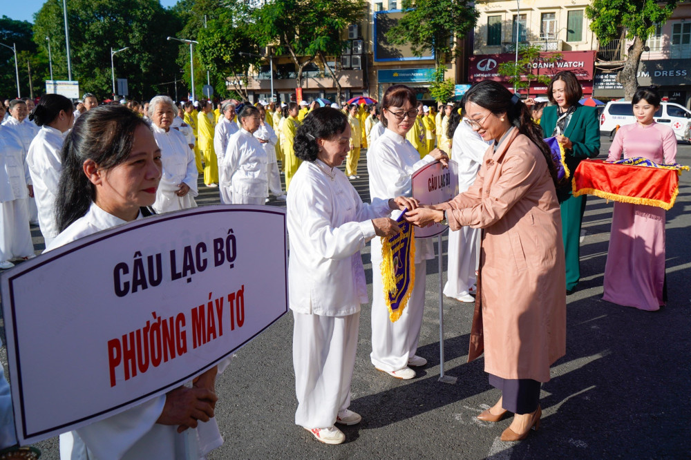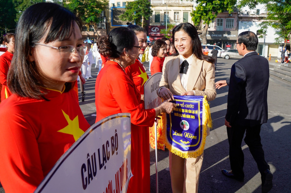 Phát biểu tại khai mạc chương trình đồng diễn, Giám đốc Sở Văn hóa và Thể thao Trần Thị Hoàng Mai nhấn mạnh: Trong những năm qua, các môn, nội dung hoạt động thể dục, thể thao quần chúng của người cao tuổi phát triển nhanh cả về số lượng và chất lượng như đi bộ, bóng chuyền hơi, cầu lông… đặc biệt là tập luyện dưỡng sinh, nhảy dân vũ. Các nội dung này được phát triển mạnh ở các thôn, xóm, khu phố, tổ dân phố. Phong trào tập luyện thể dục thường xuyên của người trung cao tuổi trên địa bàn thành phố đã tạo sân chơi bổ ích để người trung cao tuổi giao lưu, trao đổi, lan tỏa, học tập kinh nghiệm, đồng thời cũng giúp người cao tuổi tăng cường sức khỏe. Để tổ chức thành công Chương trình đồng diễn thể dục các CLB Người cao tuổi, Giám đốc Sở Văn hóa và Thể thao yêu cầu các đơn vị liên quan và các thành viên Ban Tổ chức phối hợp chặt chẽ, tổ chức chu đáo, bảo đảm an toàn, tạo mọi điều kiện thuận lợi để chương trình đồng diễn đạt kết quả cao.