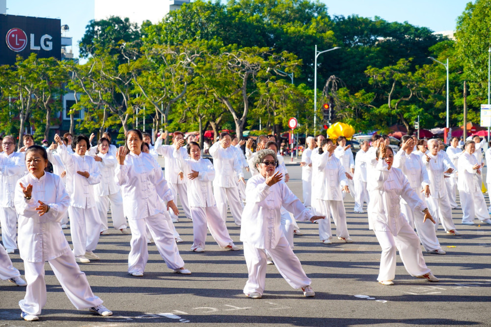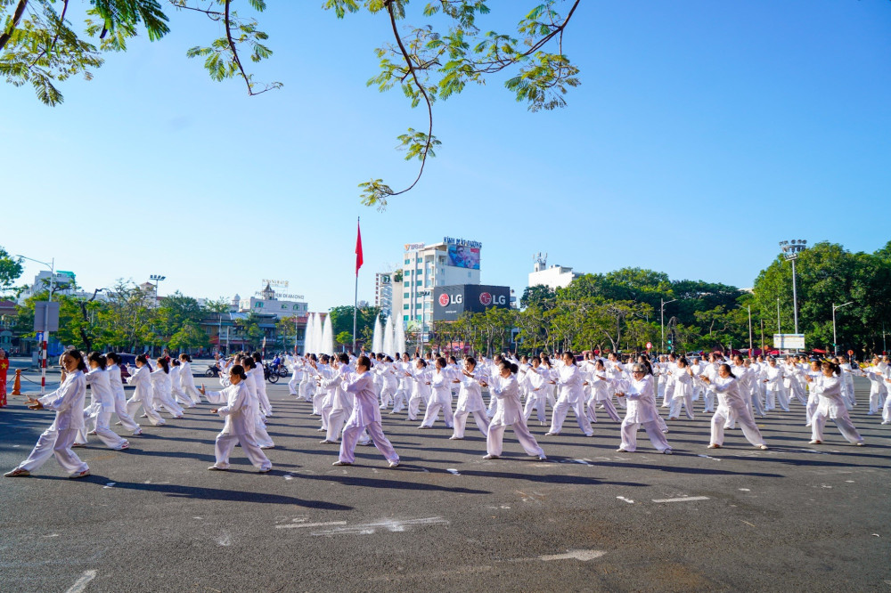 Các nội dung đồng diễn: Thái cực quyền 24 thức, Thái cực quyền 27 thức, Thái cực quyền 32 thức, Thái cực quyền 33 thức, Thái cực song quạt 26 thức và Dân vũ.