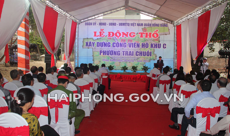 Phát biểu tại Lễ động thổ, Phó Chủ tịch UBND thành phố Nguyễn Đức Thọ ghi nhận, biểu dương quận Hồng Bàng đã chủ động, tích cực triển khai đầu tư xây dựng công viên cây xanh tại hồ khu C, phường Trại Chuối bằng nguồn vốn ngân sách quận. Đây là công trình công viên cây xanh trong khu dân cư đầu tiên trong tổng số 67 công viên của thành phố đầu tư trong giai đoạn 2021-2025, có ý nghĩa hết sức quan trọng trong việc cải thiện điều kiện vệ sinh môi trường khu vực, đóng góp không nhỏ cho sự phát triển sự nghiệp văn hóa, thể dục thể thao, sinh hoạt cộng đồng… tạo sức lan tỏa chủ trương của Thành ủy, UBND thành phố về chỉnh trang đô thị, nâng cao chất lượng sống cho Nhân dân.
