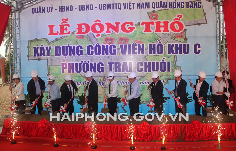 Chào mừng Lễ kỷ niệm 65 năm Ngày giải phóng Hải Phòng (13/5/1955-13/5/2021), Lễ hội Hoa phượng đỏ-Hải Phòng năm 2021 và đặc biệt là Lễ kỷ niệm 60 năm ngày thành lập quận Hồng Bàng (5/7/1961-5/7/2021), sáng 30/3, quận Hồng Bàng tổ chức Lễ động thổ xây dựng công viên cây xanh tại hồ khu C, phường Trại Chuối. Đây là công viên đầu tiên được xây dựng theo chủ trương mỗi phường một công viên cây xanh của thành phố trên địa bàn quận.