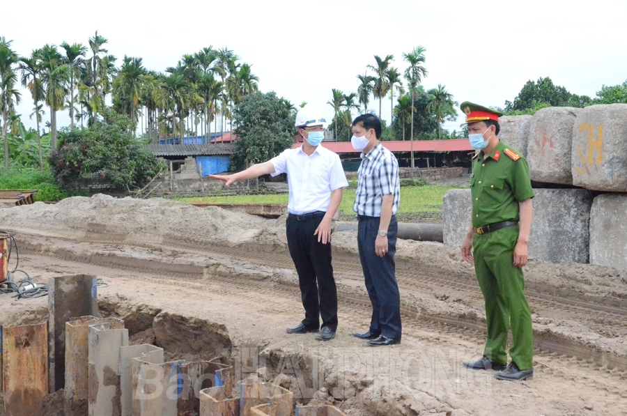 Chiều 10/5, đồng chí Phạm Văn Lập, Ủy viên Ban Thường vụ Thành ủy, Bí thư Huyện ủy Thủy Nguyên kiểm tra tiến độ thi công dự án đường liên tỉnh Thủy Nguyên (Hải Phòng)-Kinh Môn (Hải Dương), đoạn từ đường tỉnh 352 đến quốc lộ 10.