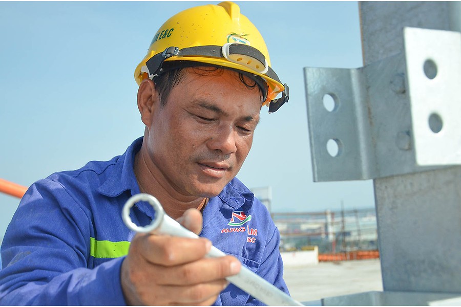 Để bảo đảm đúng tiến độ, các kỹ sư, công nhân thi công liên tục không kể thời tiết khắc nghiệt.