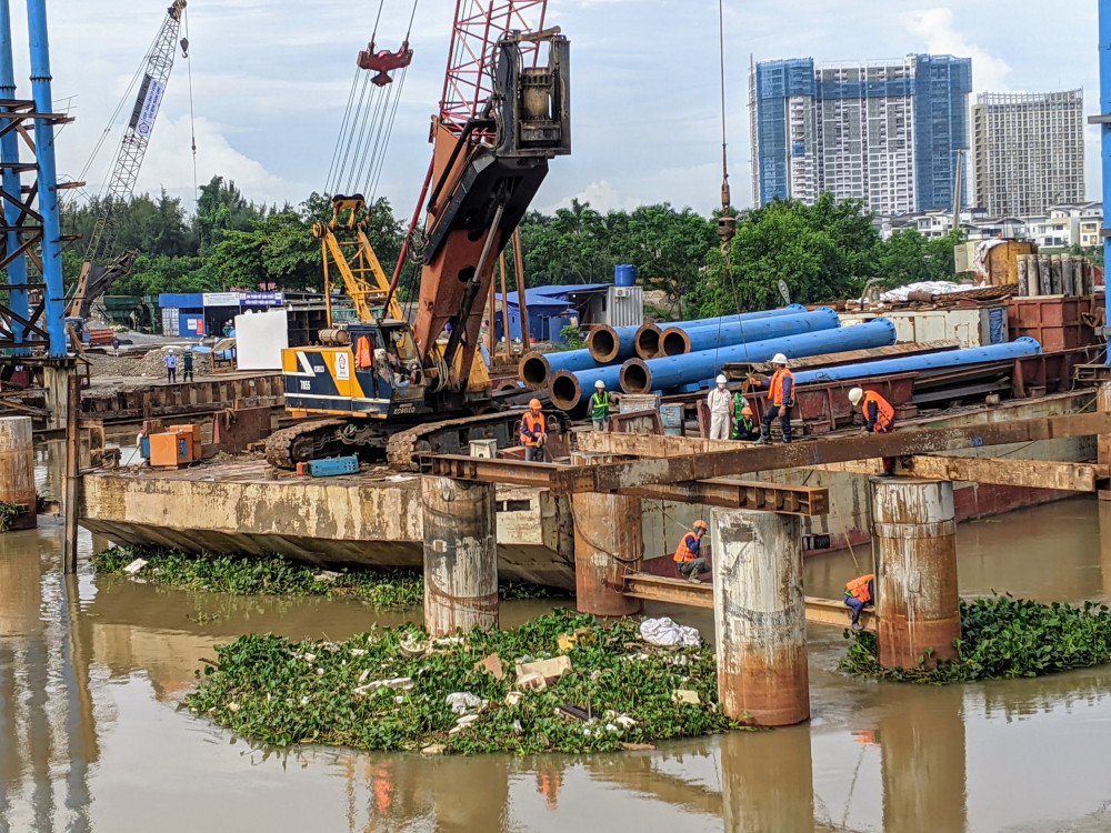 Về công tác thi công cầu và nút giao, đến nay liên danh nhà thầu đã thực hiện được 22/28 trụ, mố cầu; đang thi công 6 trụ, mố còn lại. Công tác đúc dầm bê tông cầu chính, hoàn thành 3/10 nhịp trái phải, đang thi công 5 nhịp. Tại nhánh cầu xuống phía bên phải đã hoàn thành 5/8 nhịp; nhánh bên trái hoàn thành 3/8 nhịp; nhịp chính vòm thép với khối lượng gần 3.000 tấn hiện đang chế tạo tại các nhà máy; giá trị thực hiện ước đạt 510 tỷ đồng (bằng 51% hợp đồng).