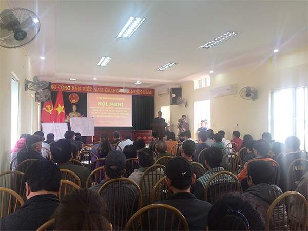 Chiều 25-3, Ủy ban nhân dân quận Hồng Bàng tổ chức thông báo thu hồi đất phục vụ Dự án đầu tư xây dựng nút giao Nam cầu Bính đối với các hộ dân có đất thu hồi tại phường Thượng Lý. Đồng chí Phạm Văn Đoan, Phó Chủ tịch UBND quận chủ trì cuộc họp.
