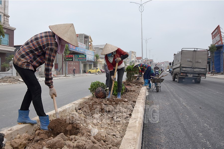 Cây xanh tại giải phân cách cứng được hoàn thiện.