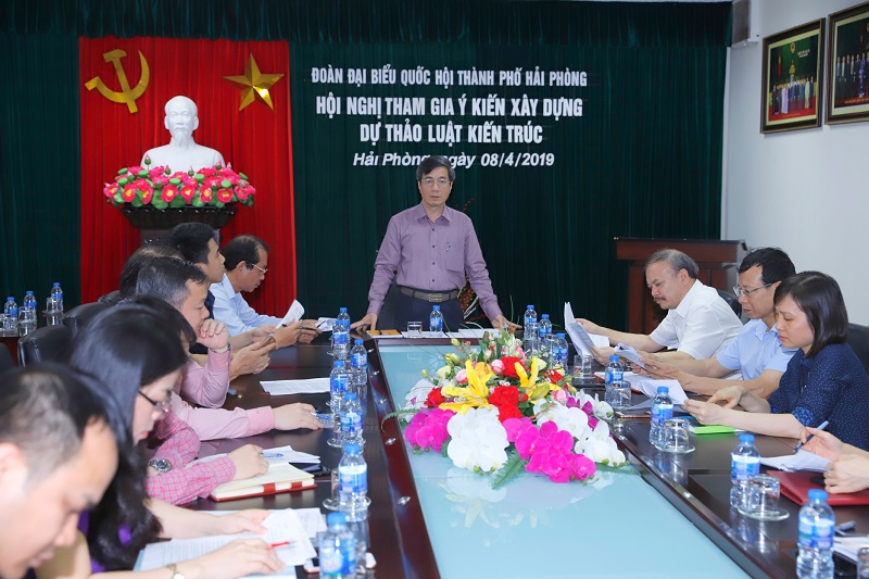 Chiều 8-4, Đoàn Đại biểu Quốc hội TP Hải Phòng tổ chức hội nghị lấy ý kiến tham gia vào dự án Luật kiến trúc. Đồng chí Bùi Thanh Tùng, Phó Trưởng Đoàn ĐBQH Hải Phòng chủ trì hội nghị.
