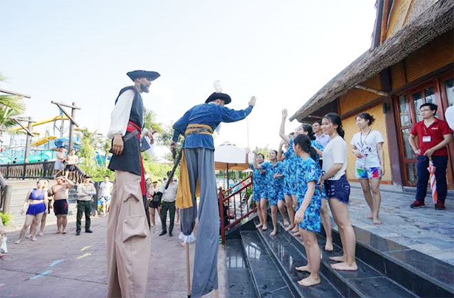 Theo chân đoàn diễu hành tới sân khấu chính của Đại tiệc Thủy cung, vô vàn những bất ngờ và sôi động mở ra trước mắt du khách, cuốn hút họ vào những vũ điệu, những bản nhạc và cả thế giới đại dương đầy màu sắc được tạo hình từ thiết kế sân khấu 3D sống động.
