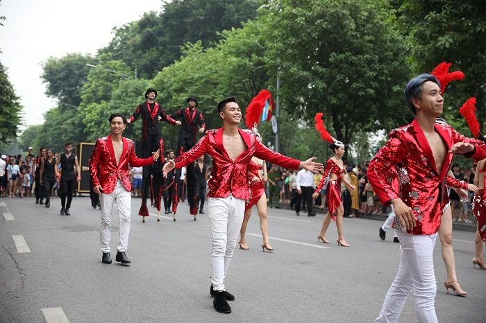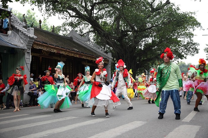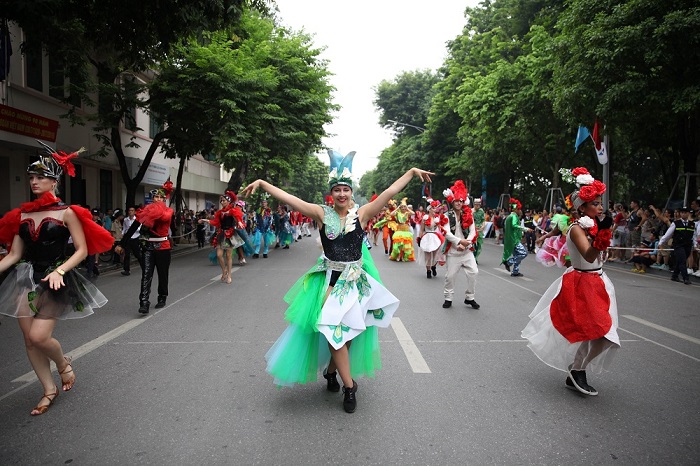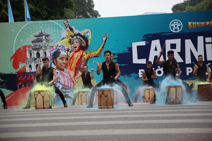 Trong chuỗi chương trình nghệ thuật chào mừng kỉ niệm 20 năm “thành phố vì hòa bình”, carnival là hoạt động được chờ mong nhất bởi những màn biểu diễn giao lưu sôi động, gần gũi, gần như không có khoảng cách với người xem. Hơn 100 nghệ sĩ nước ngoài trong những bộ trang phục rực rỡ, ấn tượng cùng những chiếc xe hoa độc đáo, diễu hành gần 2km quanh Hồ Gươm và dừng chân tại 2 điểm là khu vực Đài phun nước thuộc Quảng trường Đông Kinh Nghĩa Thục và khu vực Ngã tư Hàng Khay- Hai Bà Trưng.