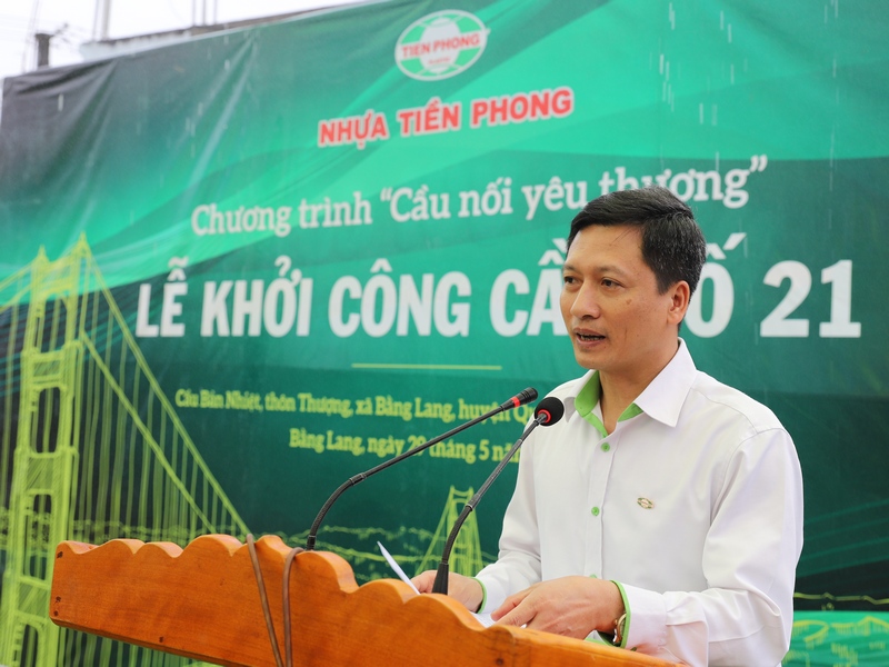 Ông Nguyễn Văn Thức, Phó Tổng giám đốc Nhựa Tiền Phong phát biểu tại lễ khởi công cầu bản Nhiệt